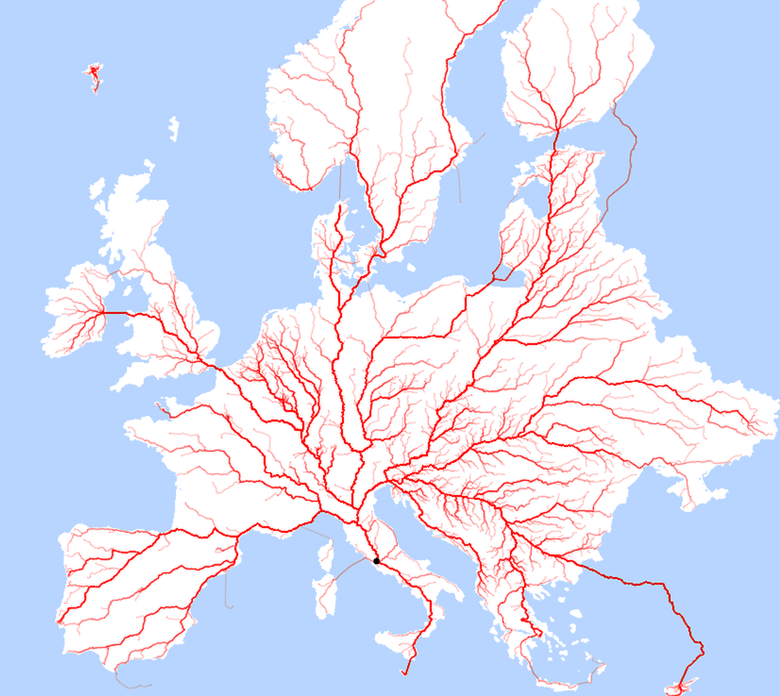 This digital map illustrates how Rome remains the gravitational center of a continent-wide web.