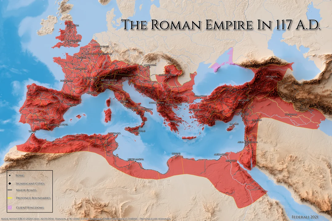 Illustration of Roman empire, circa 117 AD